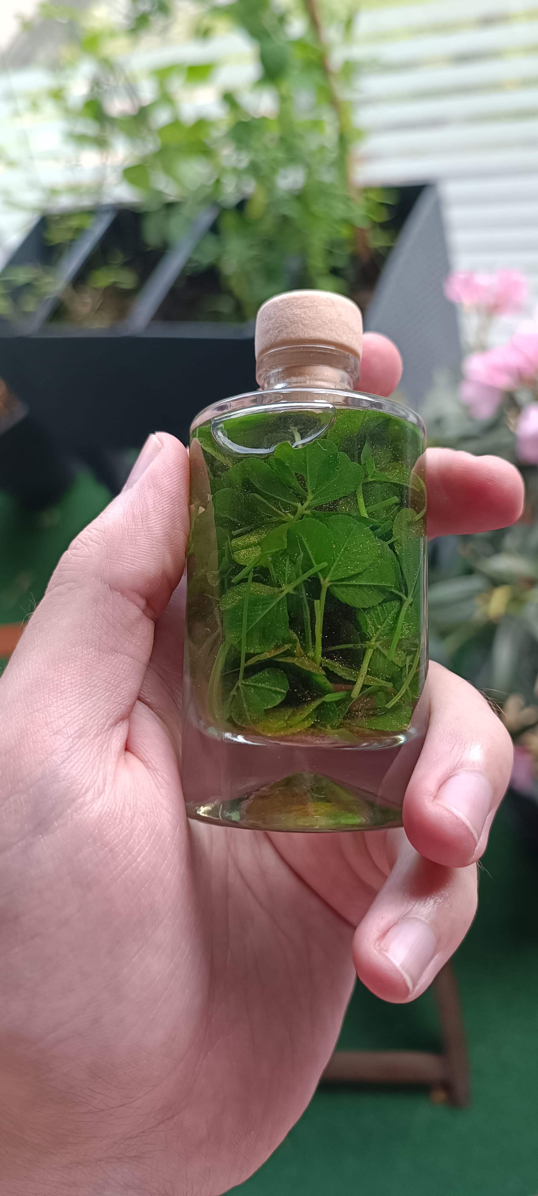 Additionally, I live and track the most interesting period of human existence to date, the shortest span of time with the most amount of change. I’ve lived through having no phones at home, no internet, to living through the immense tech explosion and the advent of Artificial Intelligence. Plus, not to boast, but my life is extraordinarily interesting, to ilustrate that, here’s a “Luck Potion” I made using 52 four-leaf clovers, 4 five-leafs, 6 six-leafs, some gin and edible glitter.